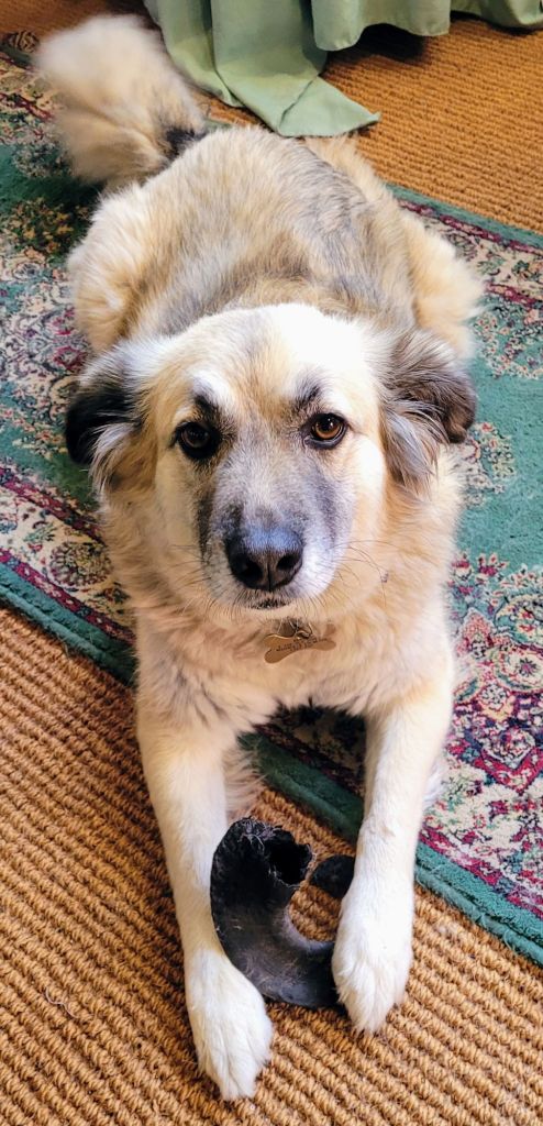 Lydia has had her second breakfast – they’d fed her before I picked her up from the kennels this morning but she still demanded – and got – her breakfast ball with her usual supply. We all need a bit of a ‘bonus ball’ sometimes. She’s now outside enjoying being back in her domain.